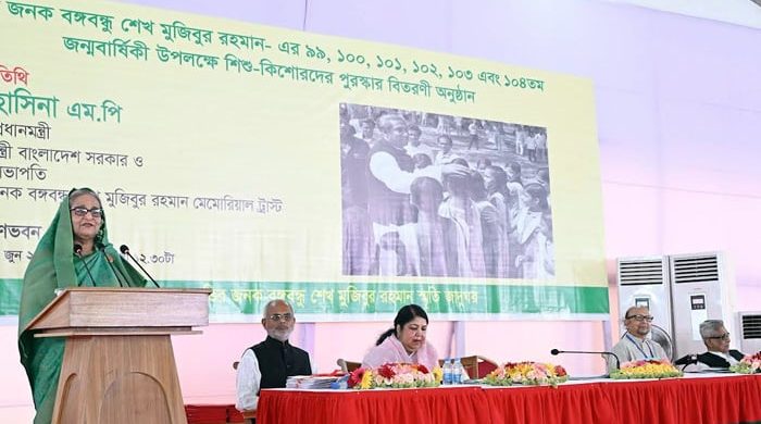 প্রধানমন্ত্রী আজ বিকেলে তাঁর সরকারি বাসভবন গণভবনে জাতির পিতার জন্মবার্ষিকী উপলক্ষে আয়োজিত রচনা ও চিত্রাংকন প্রতিযোগিতার বিজয়ীদের মধ্যে পুরস্কার বিতরণ অনুষ্ঠানে দেওয়া ভাষণে একথা বলেন।