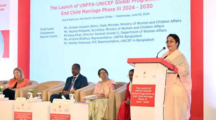 মহিলা ও শিশু বিষয়ক প্রতিমন্ত্রী এবং আওয়ামী লীগের প্রেসিডিয়াম মেম্বার সিমিন হোসেন (রিমি) বলেছেন, বাল্যবিবাহ একটি সামাজিক সমস্যা।ইউএনএফপিএ ও ইউনিসেফের সহায়তায় বাল্যবিবাহ নিরসনে প্রচেষ্টা আরো জোরদার করেছে সরকার। বাল্যবিবাহ প্রতিরোধে জনসচেতনতা গড়ে তুলতে হবে। আজ রাজধানীর প্যান প্যাসিফিক হোটেল সোনারগাঁয়ে UNFPA-UNICEF এর যৌথ উদ্যোগে বাস্তবায়িত Global Programme to End Child Marriage (GPECM) এর তৃতীয় পর্যায়ের উদ্বোধনী অনুষ্ঠানে প্রধান অতিথির বক্তৃতাকালে তিনি এ কথা বলেন। প্রতিমন্ত্রী বলেন, আমাদের সম্পদ সীমাবদ্ধ, বিশ্বায়নের এই যুগে আমরা পরস্পরের সহযোগিতা ও রিসোর্স শেয়ারিং এর মাধ্যমে আমাদের কার্যক্রমকে আরো সমৃদ্ধ ও আরো গতিশীল করতে পারব। এই কর্মসূচির অংশ হিসেবে আমরা অন্যান্য দেশের কার্যক্রম এবং বাল্যবিবাহ প্রতিরোধে তাদের কার্যকরী উদ্যোগ ও ইনোভেশন সম্পর্কে জানতে পারছি এবং একই সাথে সেটি বাংলাদেশের প্রেক্ষাপটে কতটুকু কার্যকর তা পরীক্ষা করার সুযোগও পাচ্ছি।