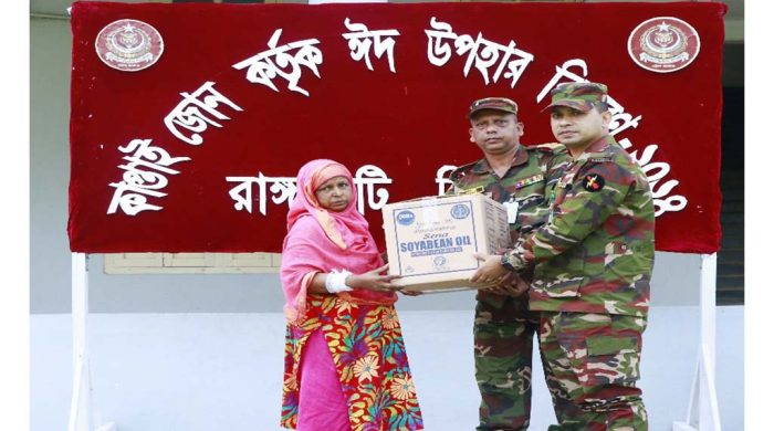 কাপ্তাইয়ে দুস্থ মানুষের মাঝে সেনাবাহিনীর ঈদ উপহার বিতরণ