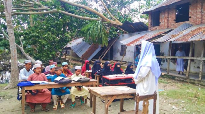 ঘূর্ণিঝড় রিমেলের নিশ্চিহ্ন কাউখালীর জোলাগাতি মাদ্রাসায় খোলা আকাশের নিচে পাঠদান