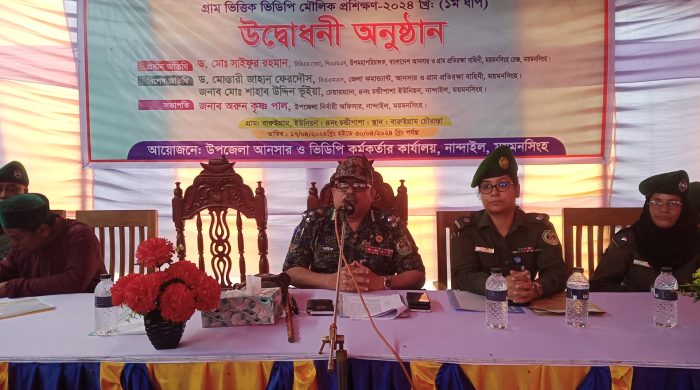 ময়মনসিংহের নান্দাইল উপজেলা আনসার ও ভিডিপি’র আয়োজনে “ স্মার্ট আনসার, সমৃদ্ধ গ্রাম” পাইলটিং কর্মসূচী বাস্তবায়নের লক্ষ্যে দশদিন ব্যাপী গ্রাম ভিত্তিক ভিডিপি মৌলিক প্রশিক্ষনের শুভ উদ্বোধন করা হয়েছে।