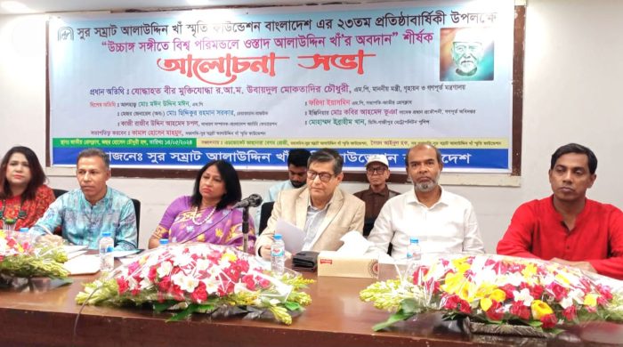 মঙ্গলবার বিকালে জাতীয় প্রেসক্লাব জহুর হোসেন চৌধুরী হলে সুর সম্রাট আলাউদ্দিন খাঁ স্মৃতি ফাউন্ডেশন বাংলাদেশ এর ২৩তম প্রতিষ্ঠাবার্ষিকী উপলক্ষ্যে “উচ্চাঙ্গ সঙ্গীতে বিশ^ পরিমন্ডলে ওস্তাদ আলাউদ্দিন খাঁর অবদান” শীর্ষক আলোচনা সভায় প্রধান অতিথির বক্তৃতায় তিনি এসব কথা বলেন।