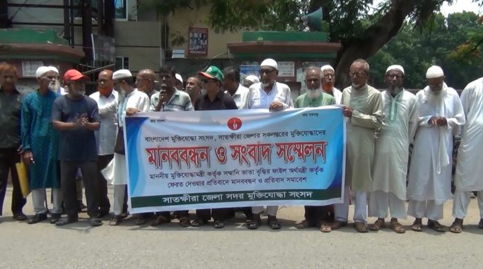 ভাতা বৃদ্ধির দাবিতে সাতক্ষীরায় মুক্তিযোদ্ধাদের মানববন্ধন