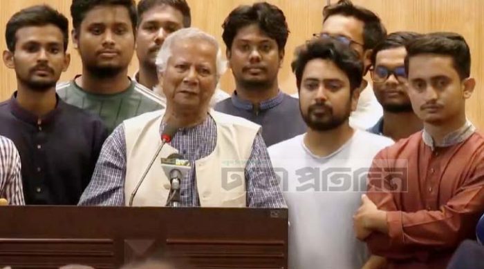 ড. মুহাম্মদ ইউনুস বলেছেন, আজকে আমাদের গৌরবের দিন। যে বিপ্লবের মাধ্যমে বাংলাদেশ আজকে নতুন দিনের সৃষ্টি করলো। সেটাকে সামনে রেখে আরো মজবুত করে আমাদের সামনে এগিয়ে যেতে হবে।