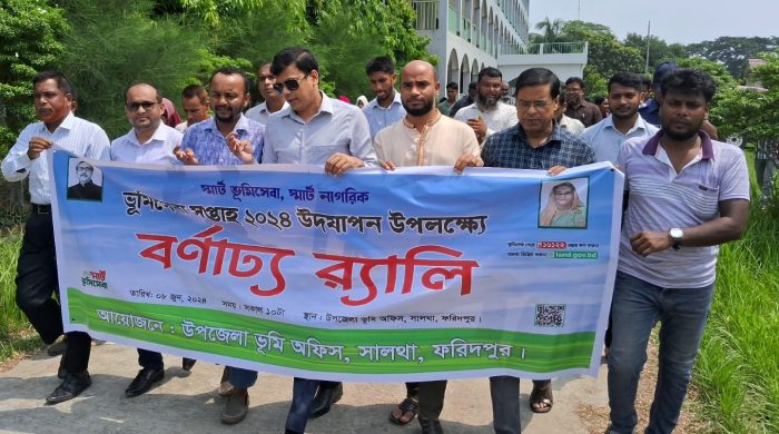 “স্মার্ট ভূমি সেবা, স্মার্ট নাগরিক” এই প্রতিপাদ্য বিষয়কে সামনে রেখে ফরিদপুরের সালথায় জাতীয় ভূমিসেবা সপ্তাহ-২০২৪ উদযাপন উপলক্ষ্যে উদ্ধোধনী অনুষ্ঠান, র্যালি ও আলোচনা সভা অনুষ্ঠিত হয়েছে।