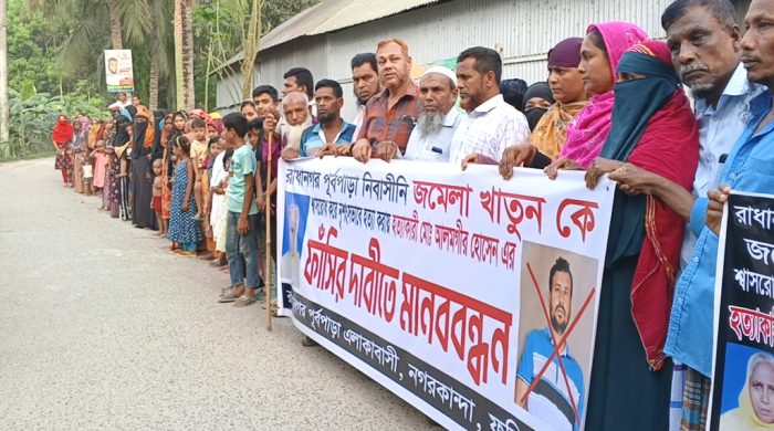 ফরিদপুরের নগরকান্দা উপজেলায় টাকার লোভে বৃদ্ধা খালা জামেলা বেগমকে নির্মমভাবে হত্যার ঘটনায় জড়িত ঘাতকের সর্বোচ্চ শাস্তি ফাঁসির দাবিতে মানববন্ধন করেছে স্থানীয় এলাকাবাসী। আজ সোমবার (০৬ এপ্রিল) বিকেলে উপজেলার রামনগর ইউনিয়নের আরও পড়ুন..
